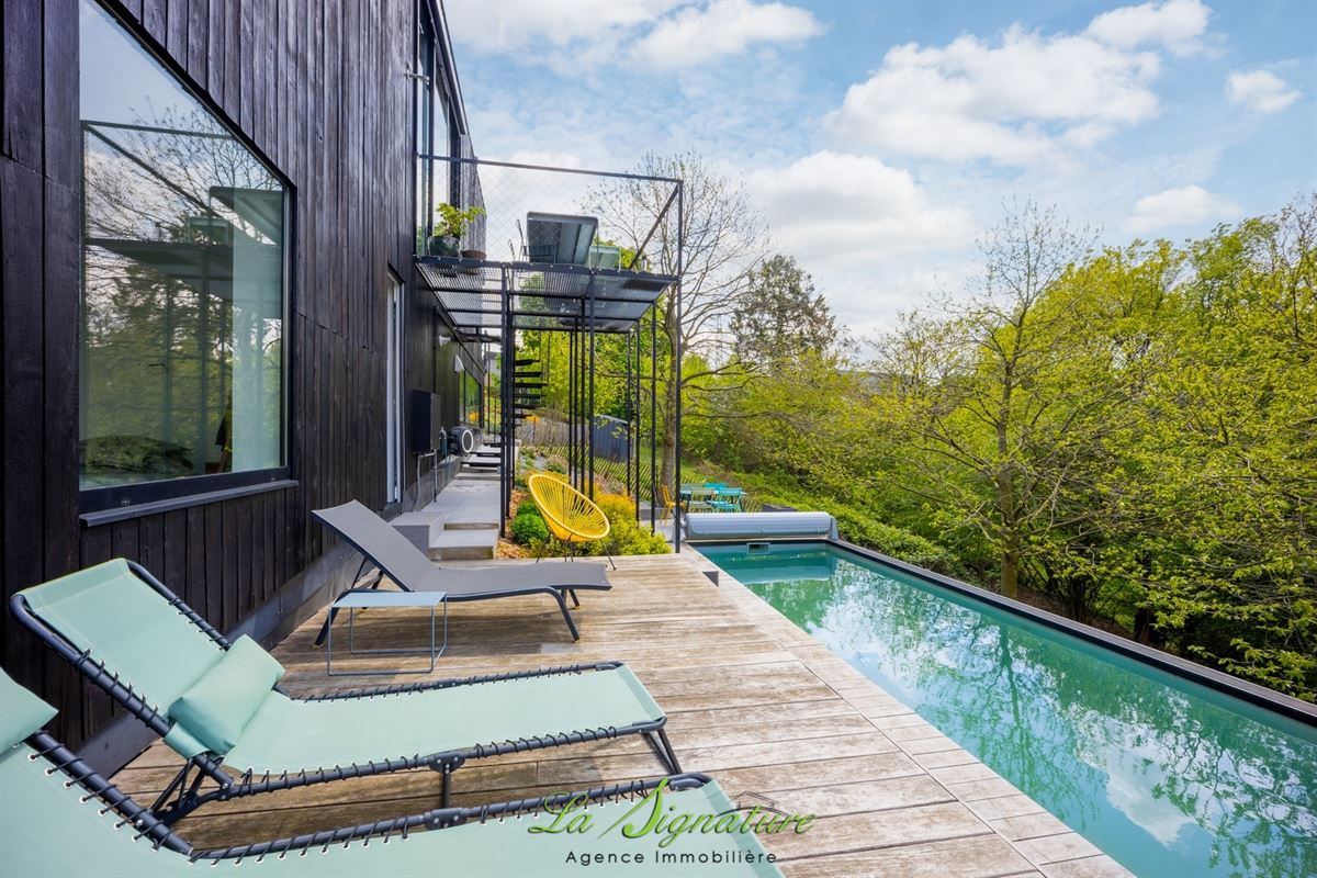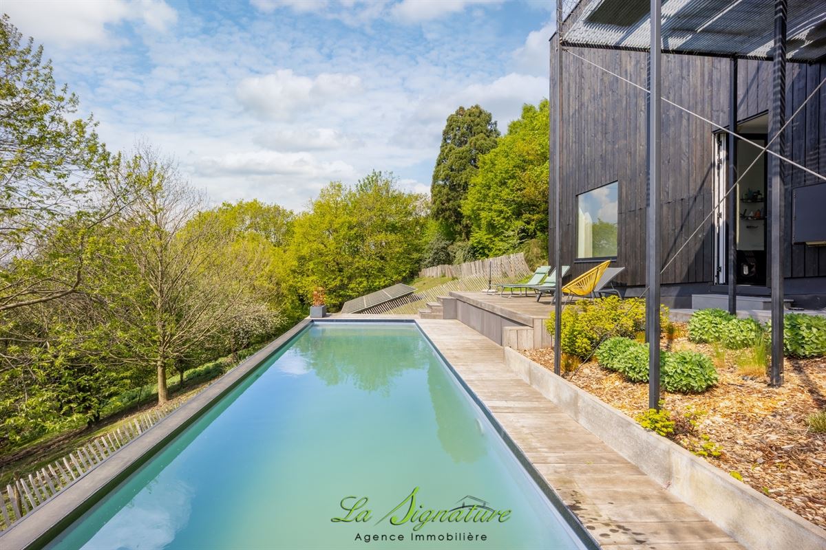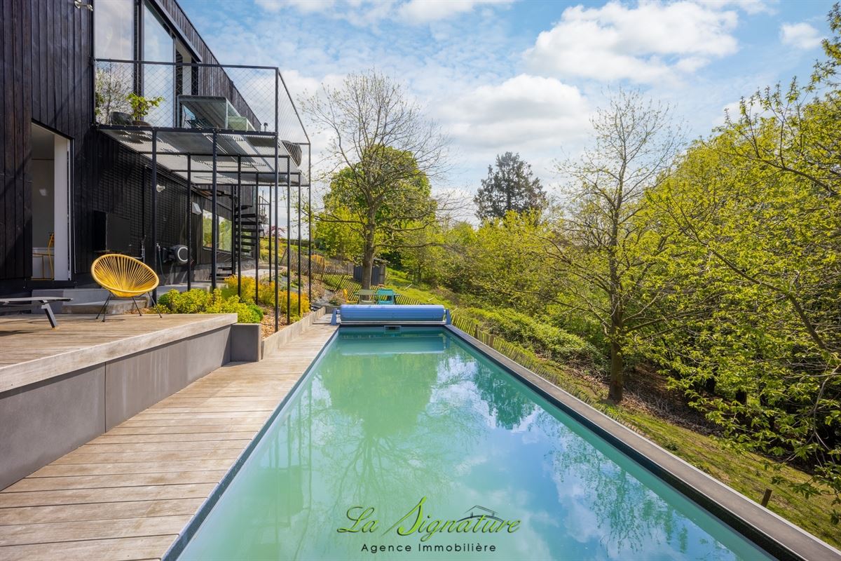 La Signature Immobilière vous présente cette villa d'architecte idéalement située sur les hauteurs de Sarolay - Cette habitation de style contemporain vous offrira une vue imprenable ainsi qu'un lieu de vie et des espaces atypique et lumineux - Il se compose comme suit : REZ-DE-CHAUSSÉE : Spacieuse cuisine entièrement équipée avec ilot central et de nombreux rangements - Salle à manger avec accès direct à une agréable terrasse et à l'espace extérieur - Salon - SOUS-SOL : Hall de nuit - Chambre 1 de 16m² - Chambre 2 de 13m² - Buanderie avec douche et wc - Suite parentale avec accès à une salle de bain (Douche à l'italienne, baignoire, wc et double lavabo), ainsi qu'à une terrasse, à une piscine chauffée et à un agréable jardin - DIVERS : Système de chauffage central gaz par le sol (Chaudière de 2022) - Électricité conforme - Double vitrage en alu - 27 Panneaux photovoltaïque - Pompe à chaleur dédiée à la piscine - robot tondeuse - Abris de jardin - RC: 1020 € - PEB : B n°20260401023668 - Disponible à partir de novembre 2026 - Un bien coup de coeur à découvrir sans tarder - Pour plus d'informations, n'hésitez pas à nous joindre au 04/223.30.30.