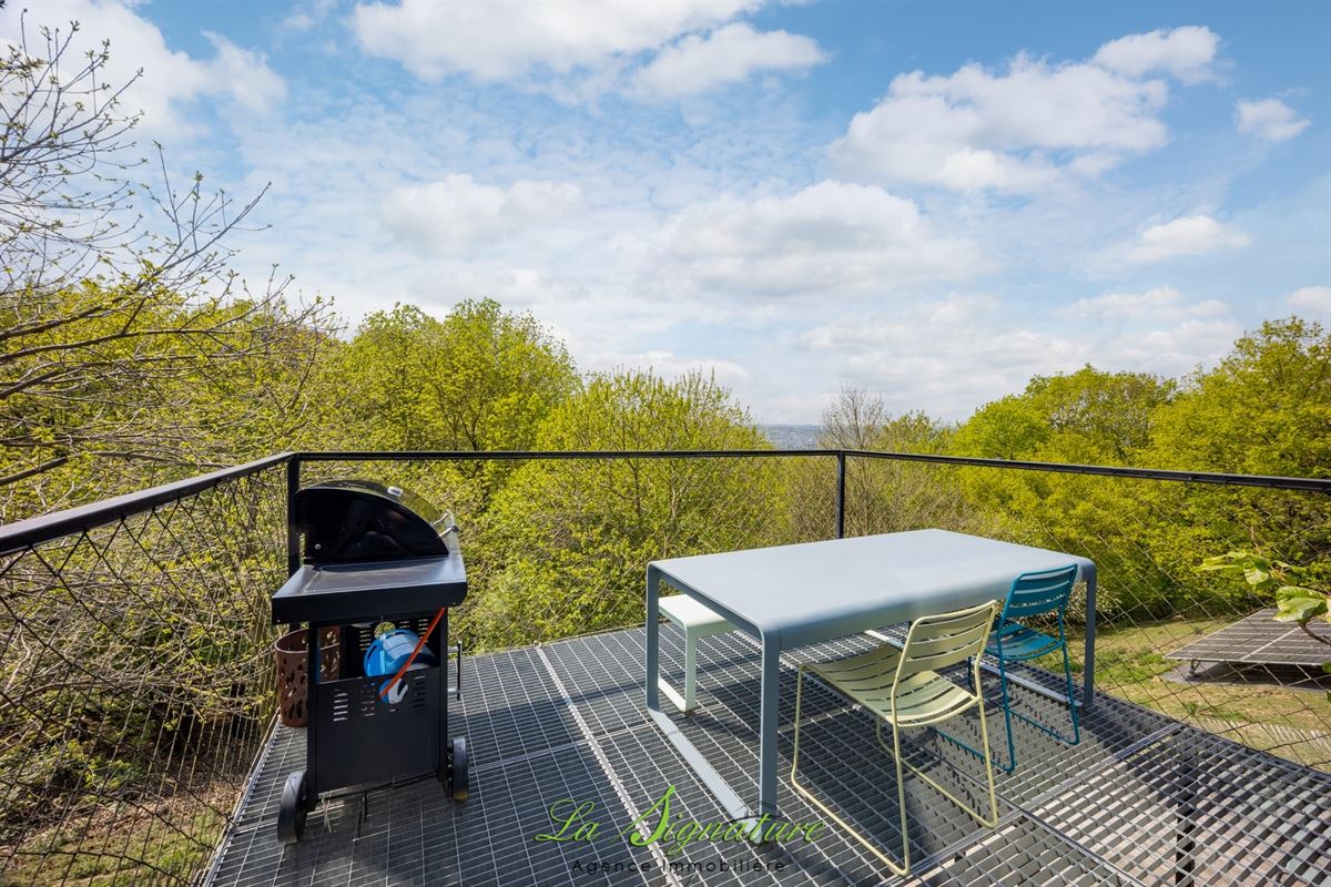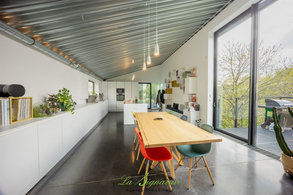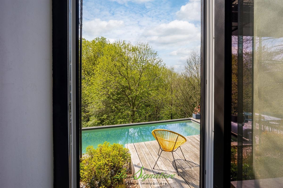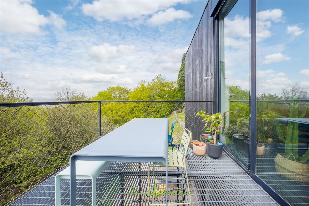 La Signature Immobilière vous présente cette villa d'architecte idéalement située sur les hauteurs de Sarolay - Cette habitation de style contemporain vous offrira une vue imprenable ainsi qu'un lieu de vie et des espaces atypique et lumineux - Il se compose comme suit : REZ-DE-CHAUSSÉE : Spacieuse cuisine entièrement équipée avec ilot central et de nombreux rangements - Salle à manger avec accès direct à une agréable terrasse et à l'espace extérieur - Salon - SOUS-SOL : Hall de nuit - Chambre 1 de 16m² - Chambre 2 de 13m² - Buanderie avec douche et wc - Suite parentale avec accès à une salle de bain (Douche à l'italienne, baignoire, wc et double lavabo), ainsi qu'à une terrasse, à une piscine chauffée et à un agréable jardin - DIVERS : Système de chauffage central gaz par le sol (Chaudière de 2022) - Électricité conforme - Double vitrage en alu - 27 Panneaux photovoltaïque - Pompe à chaleur dédiée à la piscine - robot tondeuse - Abris de jardin - RC: 1020 € - PEB : B n°20260401023668 - Disponible à partir de novembre 2026 - Un bien coup de coeur à découvrir sans tarder - Pour plus d'informations, n'hésitez pas à nous joindre au 04/223.30.30.